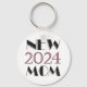 Key chain with pink and black text reads New Mum 2024.