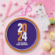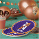 2024 New Year's Eve white and orange text design on dark blue custom event paper plates. Personalise with your own event details. Other matching items are available. Design by www.mylittleeden.com