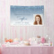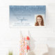 Celebrate her graduation from high school or college with this chic, glamourous photo banner, featuring a sparkly blue faux glitter drip border and blue ombre background. Easily replace the sample image with a photo of the graduate. Personalise it with her name in blue handwriting script, with the class year and school name below in sans serif font.