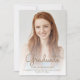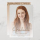 Trendy modern graduation announcement featuring a custom vertical photo. The word "Graduate" appears in gold-coloured handwriting script overlay, with the graduate's name, school and year of graduation below in sans serif font. Easily replace the sample image with your own graduate's photo. A white gradient screen helps ensure the text pops. Add details about your graduate's accomplishments and future plans on the reverse, which features a gold dripping faux glitter border on an ombre background.