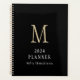 2024 Simple Monogram Initial Name Black. Keep yourself organised for the year ahead with this minnimalist design with your initial in gold on a black background. Personalise with the year and your name.