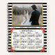 Celebrate 2024 with this classy, striped photo collage calendar notebook. On the inside, these notebooks give you the ability to choose the type of blank paper you like, so you can decide if you want to keep a bullet journal, a travel diary, a yearly sketchbook, etc. With the addition of the beautiful yearly calendar cover, you'll be able to see the entire year at a glance - plus enjoy 7 of your favourite family photos. The design includes a black-and-white stripe background with flower embellishments in pink, red and yellow. There are hearts next to the cursive month names and a thin gold-coloured border. With easy-to-read dates in bold black and gold, this beautiful calendar has room for your personalised text and 7 photographs (1 horizontal on the front; 2 horizontal + 4 square on the back). Conquer the new year with this trendy, cute calendar notebook.
