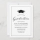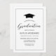 This simple, classic graduation party invitation features a mortar board cap silhouetted in black on a white background. The word "Graduation" appears in black handwriting script. Customise the sans serif text with the name of the graduate and the party details inside a thin black framing border.