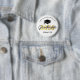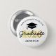 Custom graduation button featuring a graduate cap, 2025 in faux gold, school name, students name, and the word graduate in a script font.