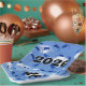Blue airborne graduation hats in the sky for the class of 2025 party