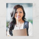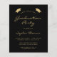 This classic, modern graduation party invitation features gold-coloured text on a black background. The word "Graduation" and the name of the graduate appear in casual modern handwriting font beneath a pair of gold mortar board caps. Customise the invitation with party details, and replace the sample image on the back with a photo of your grad.