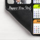 2025 Calendar Happy New Year Modern Script on Black with Corporate Business 2 Photo Colourful Mouse Pad featuring 2024 Calendar with US Federal Holidays. All the texts are pre-arranged for you to personalise easily and quickly with your own details.