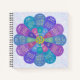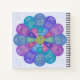 Keep track of the date in 2025 with this beautiful, personalised calendar spiral notebook. This unique design forms the shape of a flower, with the calendar months in a circle on its petals. It has a retro hippie / bohemian look, with a swirled background. The colours are all shades of purple, pink, green, and blue with yellow in the centre. Use the simple templates to customise. The design appears on front and back.