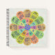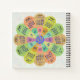 Keep track of the date in 2025 with this beautiful customised calendar spiral notebook. This unique design forms the shape of a flower, with the calendar months in a circle on its petals. It has a retro hippie / bohemian look, with a swirled background. The colours are all shades of green, orange, coral pink, purple, and blue in the centre. Use the easy template to personalise. The design appears on front and back.