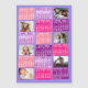 This personalised 2025 year monthly calendar fridge magnet has a mid-century modern geometric look with asymmetrical colour blocks and cut-out paper style typography. Use the easy templates to add six of your favourite photos (horizontal work best, but all shapes will automatically adjust to fit the frames). The colours are various shades of pink and purple. This vibrant, ultra-mod calendar magnet will help you conquer the new year. Always know what date it is and check the days of the week with this custom calendar.
