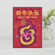 “Happy New Year” typography in both Chinese and English and a stunning visual of a bold, graphic modern yellow ombre snake on purple overlay a dramatic red abstract pattern on the front. On the back, the snake visual, along with your personal message, overlay a yellow ombre abstract background. Feel the warmth and joy of the holiday season whenever you send this stylish yet modern, personalised 2025 Chinese Lunar New Year of the Snake greeting card. Make sure someone special receives this greeting!