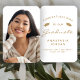 Help your graduation guests keep cool during the ceremony or party with these custom photo graduation hand fans, featuring the words "Congratulations to our Graduate" in gold text on a white background. The word "Graduate" appears in a graceful handwriting-style script. A pair of gold mortar board caps decorate the top portion of the fan. Personalise one side with your grad's name, school, and year of graduation. Easily replace the sample image on the other side with a photo of your grad.