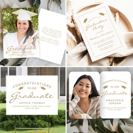 Modern White and Gold Script Graduation SuiteDesigned by Akhates Designs
