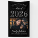 Custom "Congratulations" graduation party banner sign features a classic black, white, and silver grey colour scheme with a photo of the graduate. Personalise with the graduate's name and school. Colours can be customised to coordinate with other party or school colours.