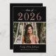 Announce your high school graduate in style with this simply elegant style photo graduation announcement card that features two senior photos of your beautiful grad with a classic black and blush pink / rose gold colour scheme - can be customised. The back of cards includes an invitation to a graduation party to celebrate the occasion.