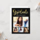 Simply stylish graduation announcement card and party invitation features "Graduate" in a trendy calligraphy script with a modern photo collage of four (4) photos of the grad. Two-sided card design includes "Let's Celebrate" graduation party wording and details on the back. Classic black and white design with gold coloured accents.