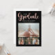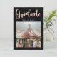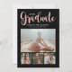 Simply stylish graduation announcement card and party invitation features "Graduate" in a trendy calligraphy script with a modern photo collage of four (4) photos of the grad. Two-sided card design includes "Let's Celebrate" graduation party wording and details on the back. Classic black and white design with rose gold / blush pink coloured accents.
