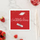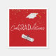 "ConGRADulations" in white text on red with gold confetti, a white diploma, and a graduate's cap for a 2025 graduation party.
