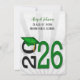 2025 graduation invitation in green and black school colours on soft silver sunburst design.