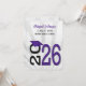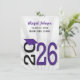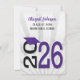 2025 graduation invitation in purple and black school colours on soft silver sunburst design.