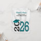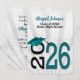 2025 graduation invitation in teal and black school colours on soft silver sunburst design.