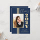 2025 Graduation Party Navy Gold Photo Frame Invitation