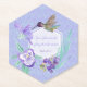 Water colored hummingbird, pansies and hydrangea petals on a lilac wavy background. Text is customizable, either the Scripture and the year text on top, both in lilac.