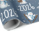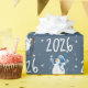 Merry Christmas and 2025 text with snowmen and star design on a blue background.