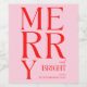 2025 Modern Merry and Bright Red Pink Christmas Wine Label
