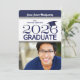 Rich and elegant navy blue hues with a hint of stripes is paired with white on this graduation invitation to ceremony or celebration with your grad's photo for the class of 2025 graduate.