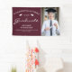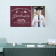 Celebrate your graduate's milestone in style with this graduation party banner. The left side features the words "Congratulations to our Graduate" in white text decorated with a pair of white mortar board caps on a burgundy background, while a vertical photo of the grad appears on the right. Personalise it with your grad's name, school, and year of graduation.