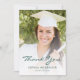 Simple modern graduation thank-you card featuring a custom vertical photo. The words "Thank You" appear in green casual handwriting script overlay, with the graduate's name and year of graduation below in sans serif font. Easily replace the sample image with your own graduate's photo. A white gradient screen helps ensure the text pops. Customise the text on the reverse side with your own thank-you note in white on a green background.