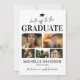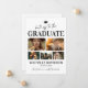 Elegant 2025 graduation announcement card featuring 6 photos of the graduate, the text "hats off to the graduate", their name, class year, a mortarboard, the inspirational quote "the tassel was worth the hassle", and what their plans are next.