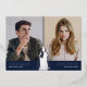 Graduation is a special milestone for both the student and their family. Make the most of the occasion with this unique two-photo joint graduation party invitation! Featuring two photos of the grads, a shimmering silver foil graduates cap tassel running through the middle, and the class year '2025', this navy blue & silver invitation is sure to make a lasting impression. The unique double celebration template is modern and makes it easy to personalise with any details you like. Celebrate two grads this year with this unique double celebration invitation. Showcase two of the grad’s best photos and make them the stars of the show. You can adjust the wording on the back of the invite to make this into a graduation announcement.
