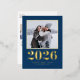 2025 Typography Navy Blue Happy New Year Photo Foil Holiday Postcard