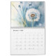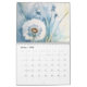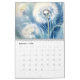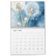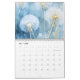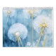 The calendar features dandelion flowers in various stages of bloom in a vintage/rustic style. The flowers are depicted in shades of blue, white, and yellow and set against a soft blue background.