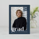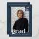 Celebrate a major milestone with this modern, editorial-style graduation announcement designed for a refined, masculine look. Featuring a muted navy blue background, soft white typography, and real silver foil accents, this double-sided graduation card delivers a timeless yet fashion-forward presentation. The template allows you to personalize the class year, graduate’s name, and school on the front with your main photo, while the back includes space for a custom message and a 3-photo collage. Designed for graduates who want a clean, confident announcement with premium foil detailing and modern typography. © Kimbellished, LLC