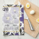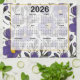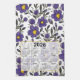 2026 Calendar Blue Violet Flowers with Leaves Tea Towel