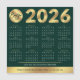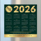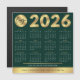 Create custom 2026 calendars with your company logo using this modern emerald green and gold effect calendar design. Great to use as a promotional gift for clients and employees. Featuring faux gold effects over a dark green background, your business logo & contact details - these 2026 calendar magnetic cards can suit any corporate brand.