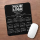 Simple professional calendar mouse pad features your logo, company name, and business contact information in white text over a modern white 2026 calendar on a black background. Add your logo, company name, and custom text (website, phone number, address, or slogan) in the sidebar. Your logo can be any shape. White or light coloured logos will work best with this design. Perfect for employees and a thoughtful gift for customers.