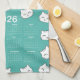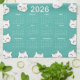 This 2026 calendar design features a playful and cute cat theme. The background is a vibrant teal, adorned with repeating illustrations of white cartoon cat faces, each with closed eyes and subtle grey markings, giving a calm and cosy vibe.