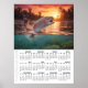 Large Wall Calendar 2026 featuring Fly Fishing theme with trout fish jumping out of the water and catching fly. Beautiful sunset riverside view. Calendar can be scaled to various sizes. For the best performance, keep the aspect ratio. Other fish calendars including carp, trout, pike, salmon, bass, catfish available.