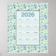 2026 Calendar Full Year Blue Floral Poster
