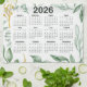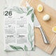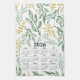2026 Calendar Green Leaves & Golden Yellow Floral Tea Towel