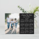 Wish friends and family a Happy New Year with a personalised holiday card featuring a vertical photo next to a 2026 calendar on the front and a horizontal photo on the back. Replace the sample photos, name, and greeting in the sidebar. The custom text is in a cool white handwritten script font. Below it is a white calendar on a black background. You can remove the Zazzle logo on the back in the sidebar.