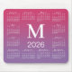 2026 Calendar Monogram on Pink to Purple Gradient Mouse Mat