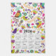 2026 Calendar Pink & Purple Birds and Flowers Tea Towel