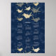 2026 Calendar Poster Origami Cranes Blue and Gold