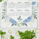 2026 Calendar Watercolor Blue Botanical Greenery Tea Towel