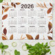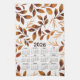 2026 Calendar Watercolor Fall Leaves Pattern Tea Towel